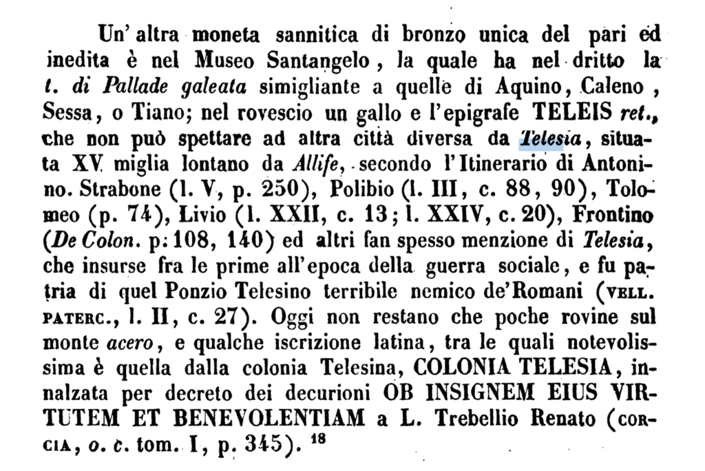 [7] G. Fiorelli, Monete inedite dell’Italia antica, Tip. Virgilio, Napoli, 1845, pp. 20-21.
