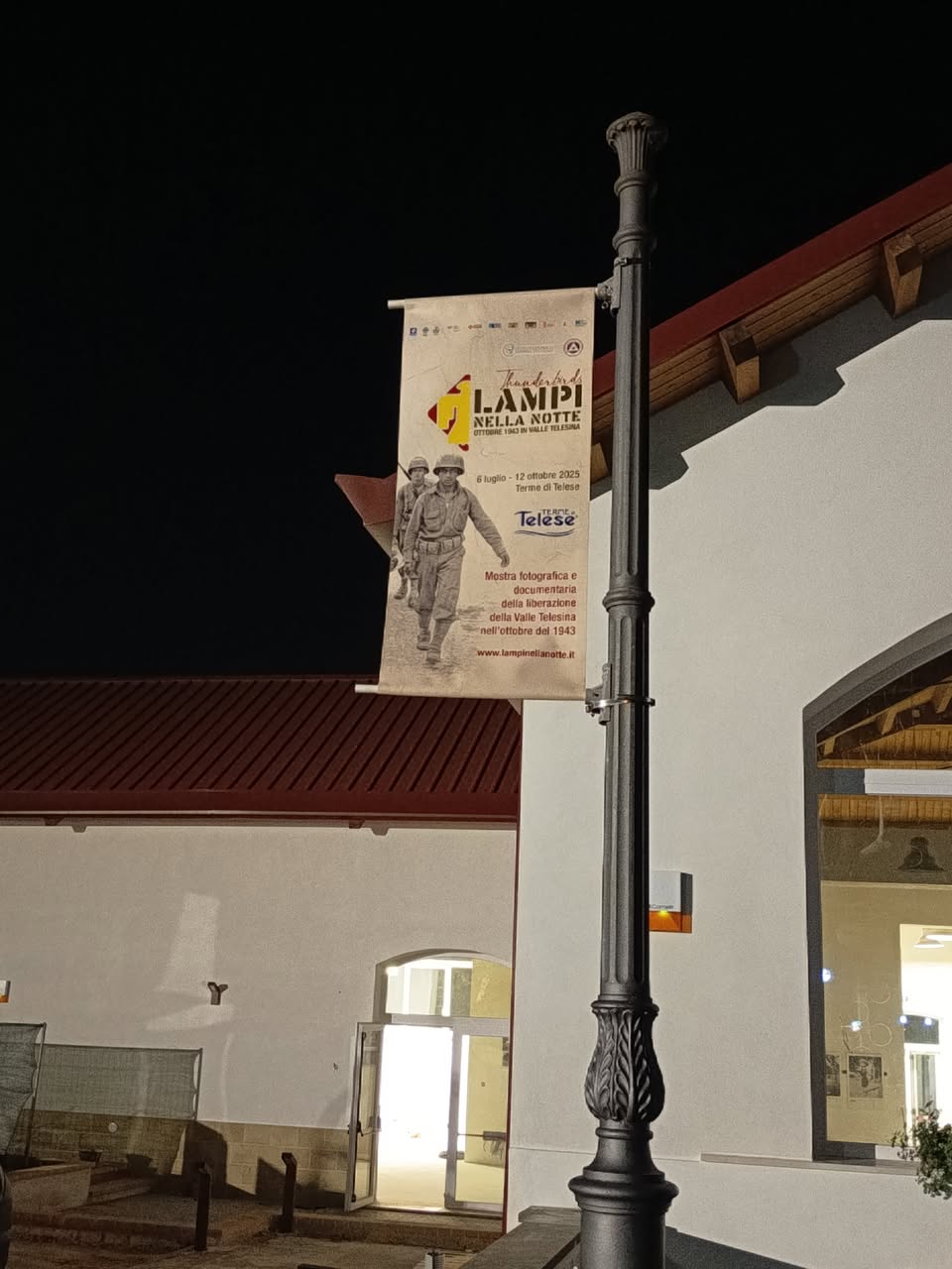 «Lampi nella Notte» è una mostra fotografica e documentaria nata dalla collaborazione tra l’Istituto Storico Sannio Telesino e l’Università Statale dell’Oklahoma. È un progetto di memoria collettiva che restituisce dignità alla storia della Valle Telesina durante la Seconda Guerra Mondiale. Attraverso fotografie inedite, il percorso espositivo racconta un paesaggio segnato dalla guerra, trasforma i luoghi in protagonisti vivi della narrazione storica ed offre spunti di approfondimento storico e culturale. L’allestimento, pensato come dispositivo sensoriale e narrativo, guida il visitatore in un viaggio emotivo e coinvolgente, dove le immagini non si osservano soltanto, ma si vivono. La mostra offre un’esperienza coinvolgente e documentata, che permette di rivivere i giorni drammatici e cruciali che portarono la liberazione dell’Italia dal nazifascismo. È un percorso visivo che unisce storia locale e memoria collettiva, restituendo voce ai luoghi e ai volti di un tempo che non va dimenticato.